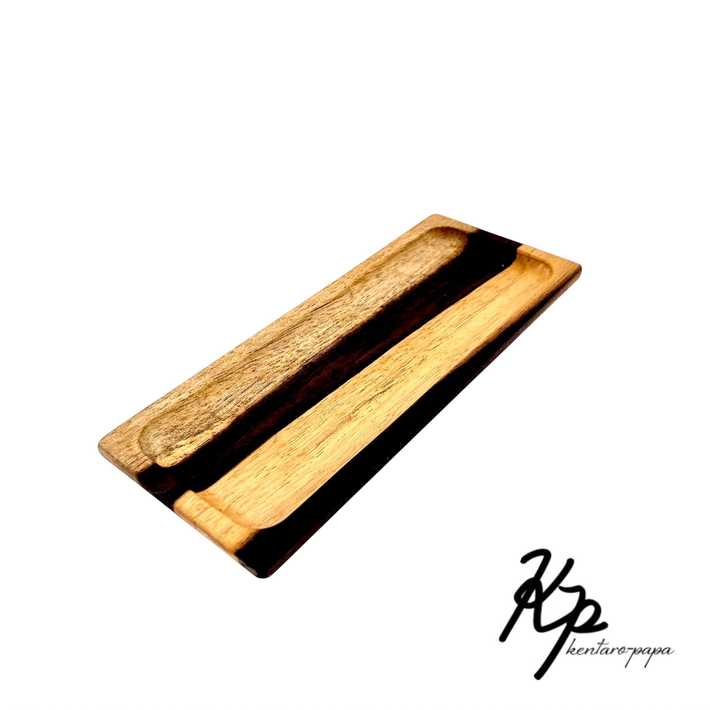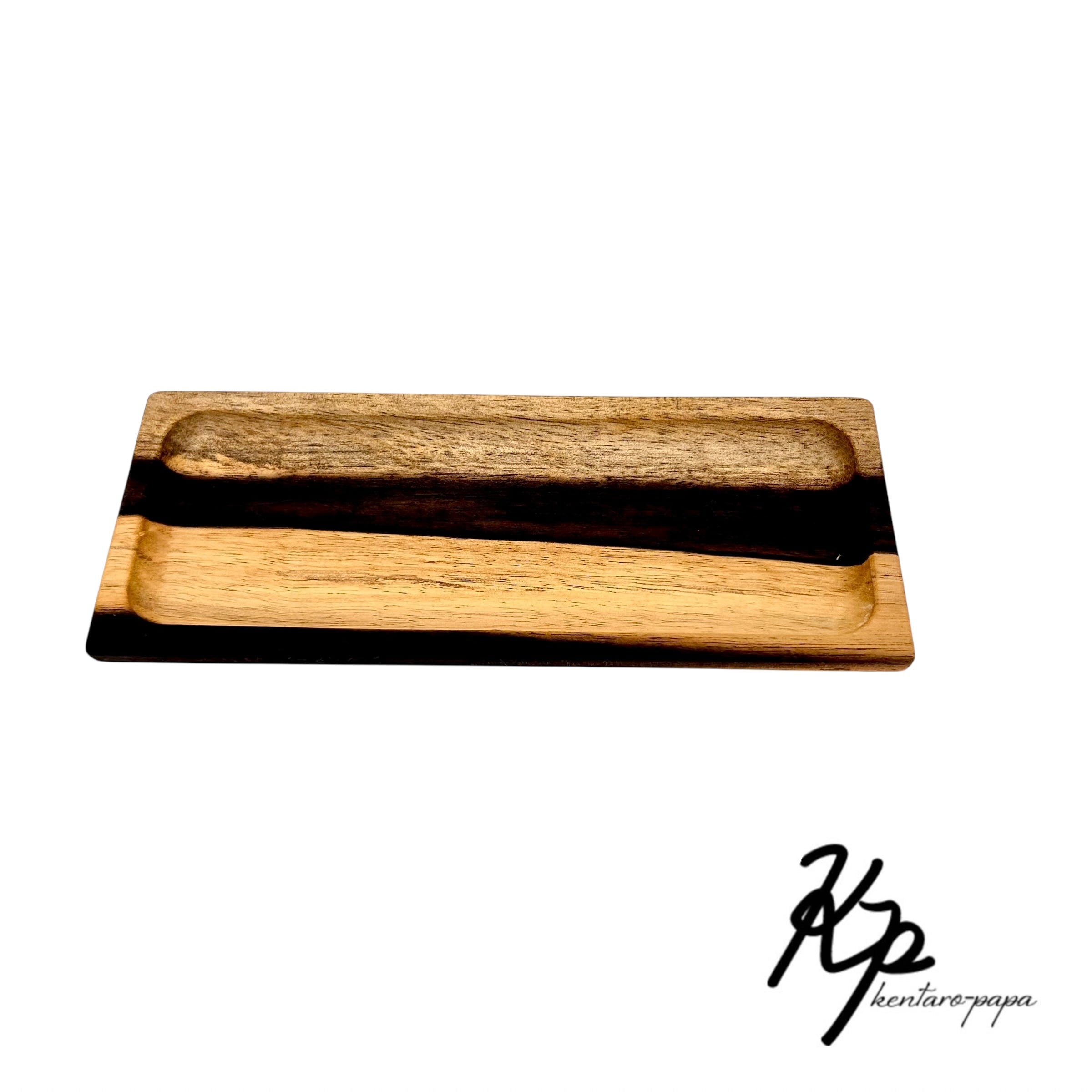 まるで墨が木の中を流れたような、偶然の芸術とも言える黒柿のトレイです。