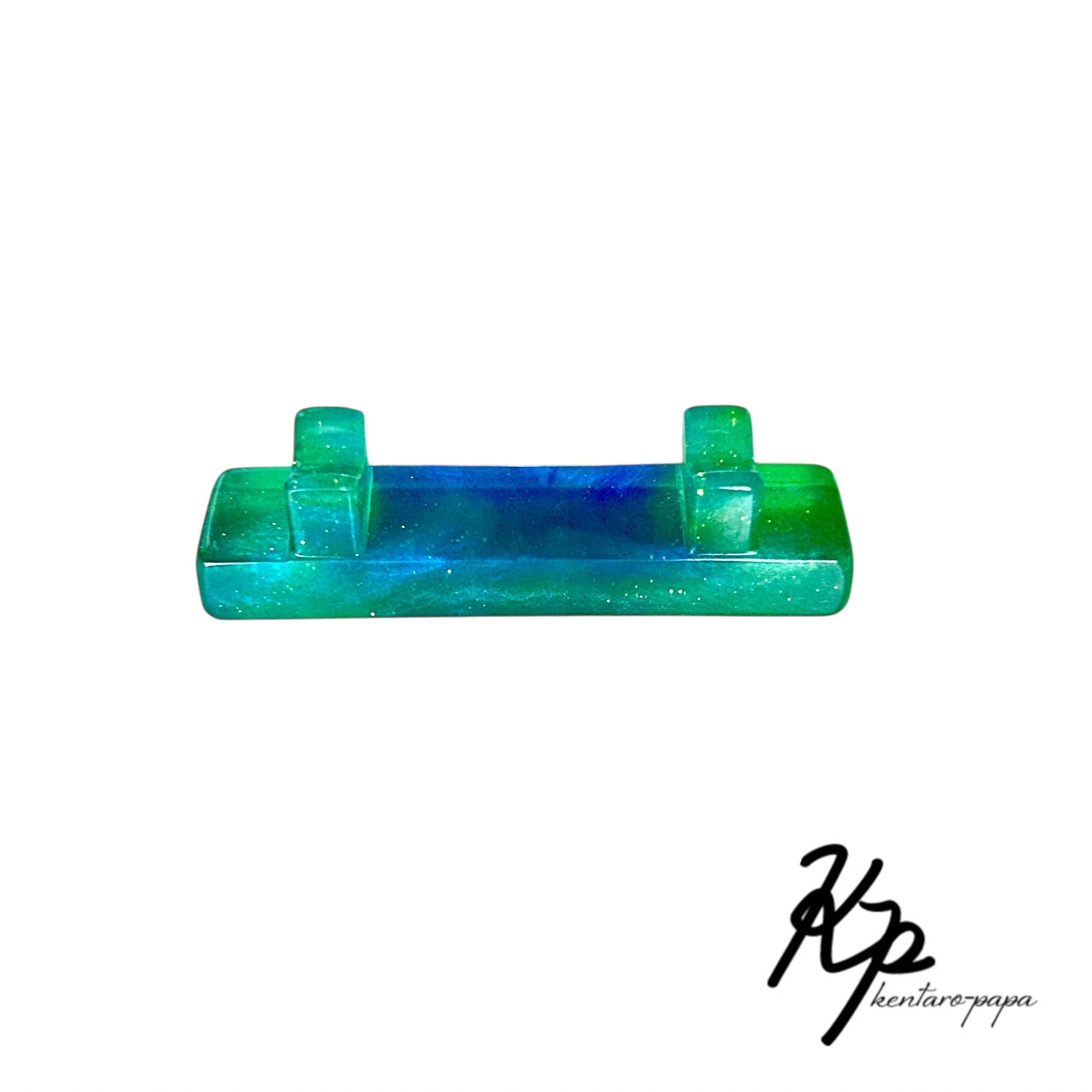 深い森の奥で静かに光る泉を切り取ったような、神秘的なグラデーションに目を奪われます。透明感あふれるレジンと繊細な輝きが、書く時間の合間にそっと心を癒してくれるペンレストです。