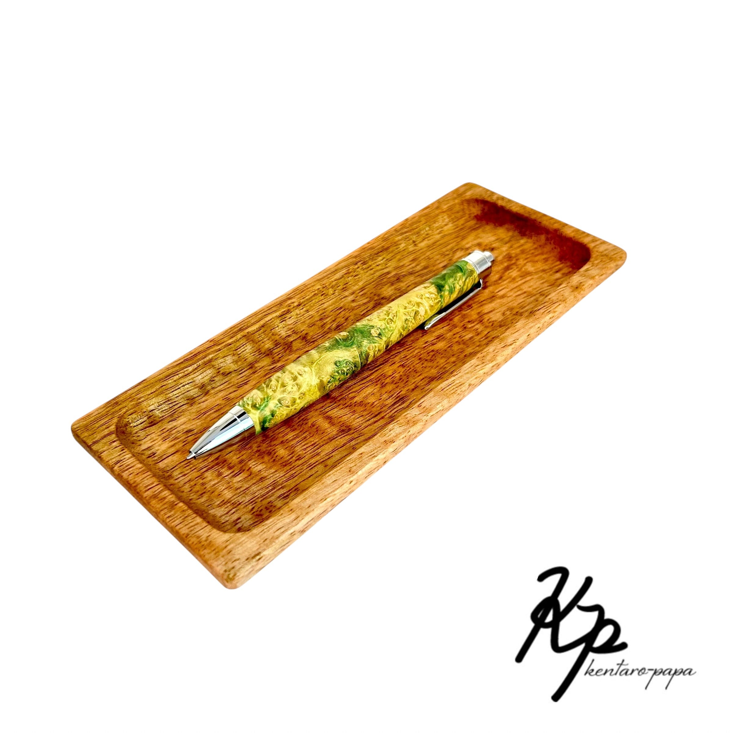 ご自身の大切なペンをありきたりな物では無く、暖かみのある色とりどりな木のトレイに置いて貰いたいと思い作りました。